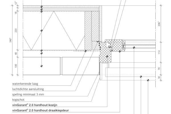 Het vinGarant® 2.0 kozijn staat symbool voor innovatie in diverse gevelelementen. Dit kozijn is toepasbaar in verschillende bouwmethoden, terug te zien in de bouwdetails. Van traditionele kalkzandsteenconstructies tot moderne prefab betonsystemen en houtskeletbouw. Ook in renovatieprojecten bewijzen de kozijnen hun flexibiliteit en duurzaamheid.Ook het vinSlide®-systeem draagt bij aan de innovatieve oplossingen van Van de Vin. Dit schuifsysteem combineert het warme karakter van hout met moderne functionaliteit.